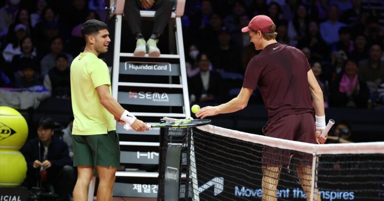 Carlos Alcaraz et Jannik Sinner ont tous deux montré leurs vraies couleurs en laissant un jeune fan se livrer à un coup léger lors du match d’exhibition qui les opposait samedi en Corée du Sud. Les n°1 mondiaux Alcaraz et n°2 Sinner ont pris la décision de ne pas disputer de tournoi officiel de préparation avant le premier grand chelem de cette année, l’Open d’Australie.