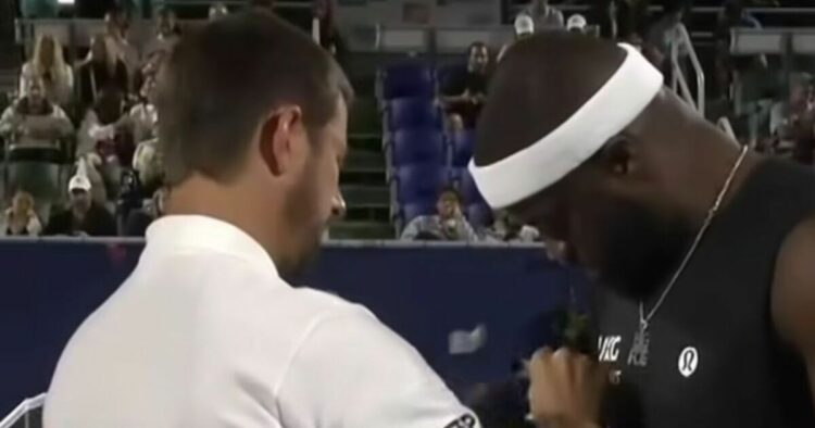 L’arbitre de chaise a dû exclure l’un des sponsors de Frances Tiafoe avant que son match puisse commencer (Image : Télévision de tennis)